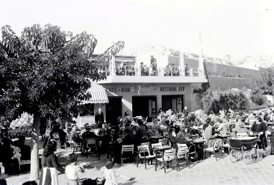 Bon dia i bon diumenge a tothom!. Als anys 40 del segle passat els tarragonins feien el vermut dels diumenges (els que podien, és clar) al Bar Restaurant Mirador. Hi havia altres bars i restaurants, però el Mirador tenia un encant especial per la seva privilegiada ubicació: el Passeig de les Palmeres. Aquest restaurant es va inaugurar quan es va fer la remodelació del passeig, a l'estiu de l'any 1947, amb les revetlles de Sant Joan, Sant Jaume i Sant Magí, on actuaven coneguts cantants com Bonet de San Pedro, entre d'altres. El menú d'estiu consistia en entremesos, un plat a escollir entre dues propostes, fruita o gelat, mitja ampolla de vi i pa. Tot plegat per 30 pessetes (18 cèntims d'euro) i comptant, com deien els anuncis, amb un "esmerado servicio". Avui us passo dues fotografies!. A les imatges podem veure que la terrassa està molt concorreguda, amb tot de gent fent el vermut. També podem veure en primer terme, les minyones de les cases "riques" que passegen els cotxets dels nens. El passeig era un dels llocs més emblemàtics de la ciutat per gaudir d'aquest aperitiu dominical. Es gaudia de les vistes del Balcó del Mediterrani i també de les actuacions de música en directe, com es veu a la terrassa superior, a càrrec dels músics de la banda municipal. El Bar Mirador va ser el successor del Bar Sans-Souci (conegut popularment com "el rovelló") que estava instal·lat al bell mig del passeig i que amb la remodelació del passeig es va enderrocar i es va construir el Bar Mirador. Fins la setmana vinent!!. Fotografies Vallvé. (Arxiu Municipal)
